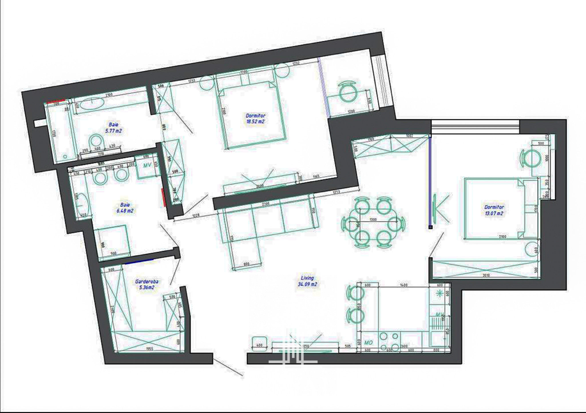 Oferim spre vânzare apartament cu 2 camere + living în complexul locativ construit de compania Dream Home Residence, amplasat în sectorul Centru, str. Moara Roșie. Locuința se desfășoară pe o suprafață de 84 m2, localizat la etajul 7 din 10, fiind compartimentat în: 2 camere, living, bucătărie, garderobă, balcon, 2 blocuri sanitare și antreu.