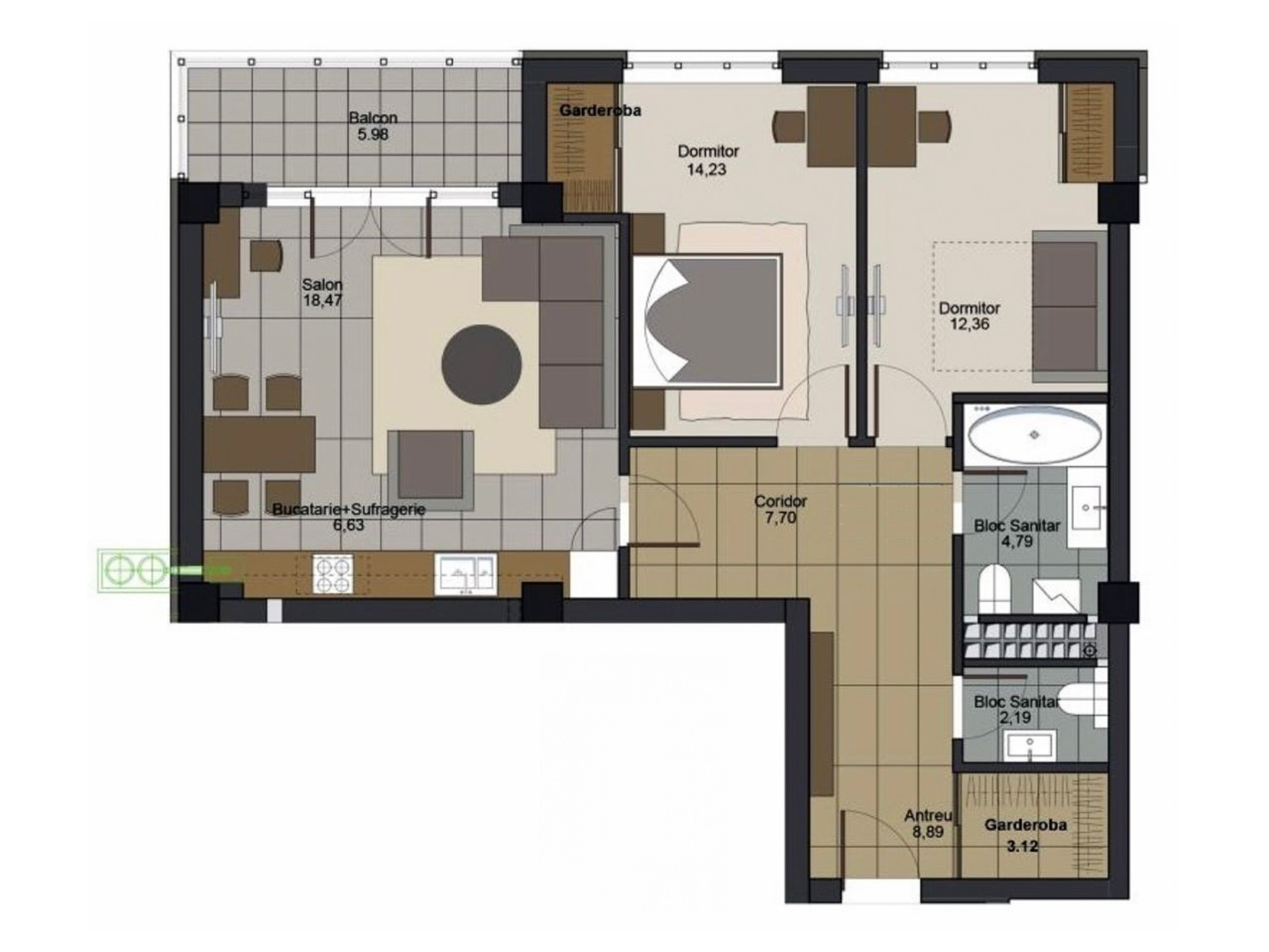 2 комнаты + гостинная